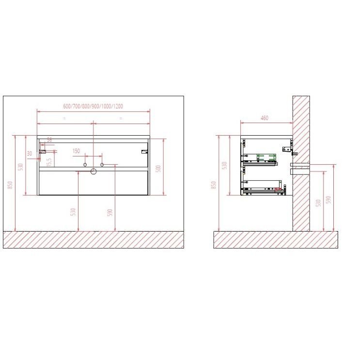 База под раковину подвесная BelBagno (Бельбагно) KRAFT с фрезерованными ручками по всей длине фасада с двумя выкатными ящиками Bianco Opaco 600x450x500 KRAFT-600-2C-SO-