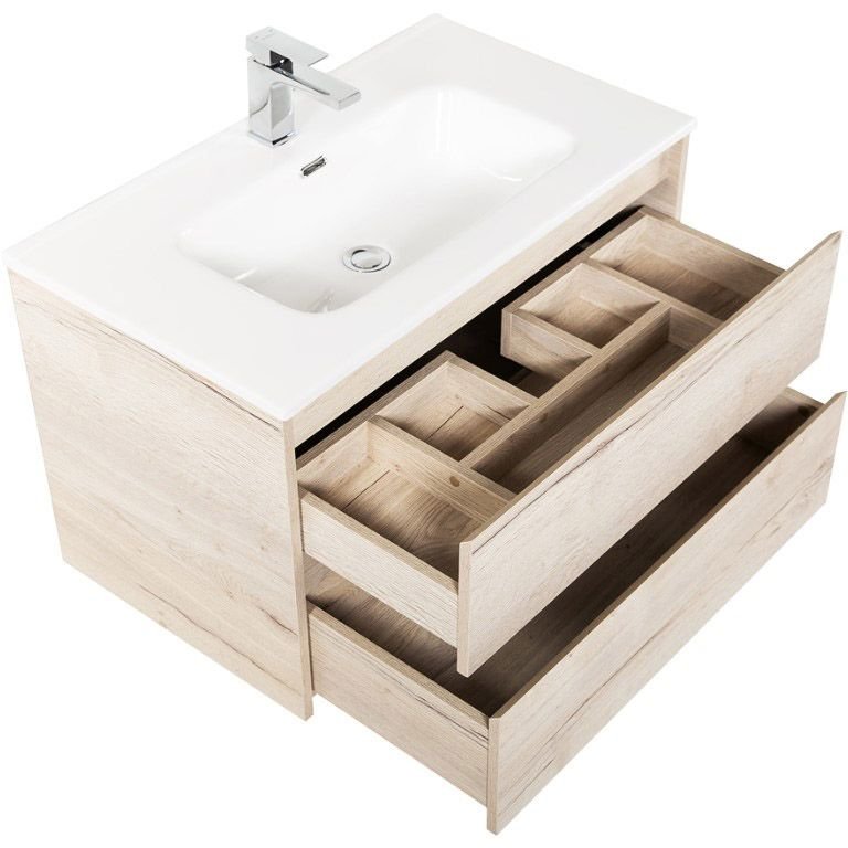 База под раковину подвесная BelBagno (Бельбагно) KRAFT с фрезерованными ручками по всей длине фасада с двумя выкатными ящиками Rovere Galifax Bianco 1000x460x500 KRAFT-