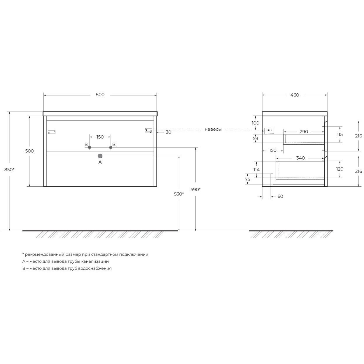 База под раковину подвесная BelBagno (Бельбагно) KRAFT с фрезерованными ручками по всей длине фасада с двумя выкатными ящиками Rovere Galifax Bianco 800x450x500 KRAFT-8