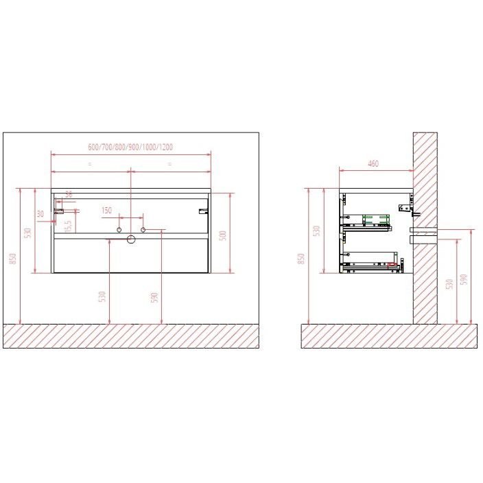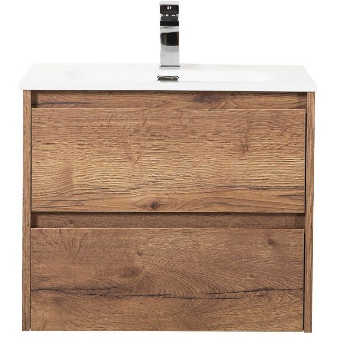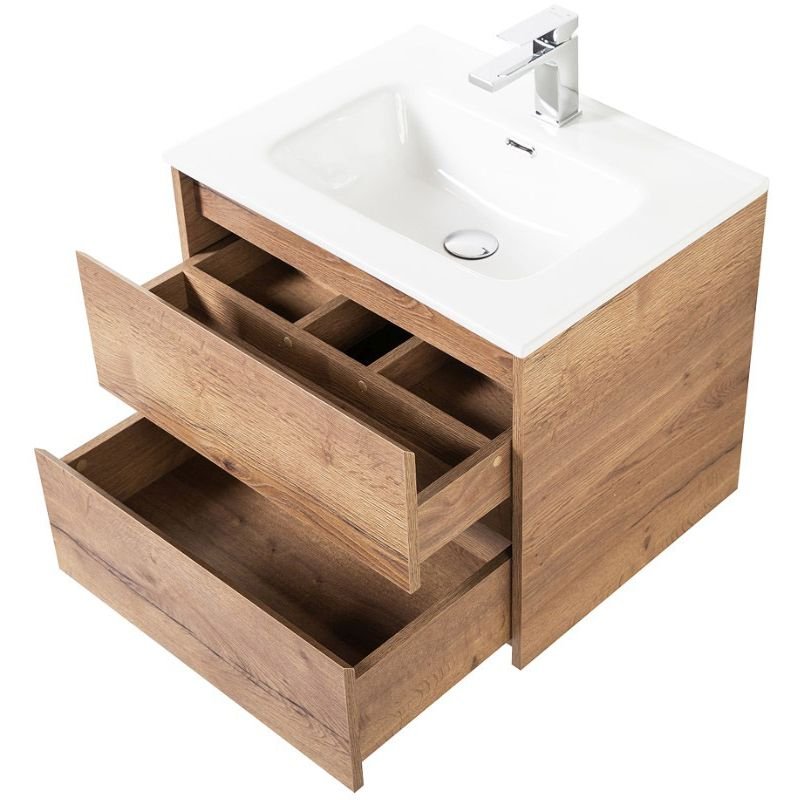 База под раковину подвесная BelBagno (Бельбагно) KRAFT с фрезерованными ручками по всей длине фасада с двумя выкатными ящиками Rovere Tabacco 600x450x500 KRAFT-600-2C-S