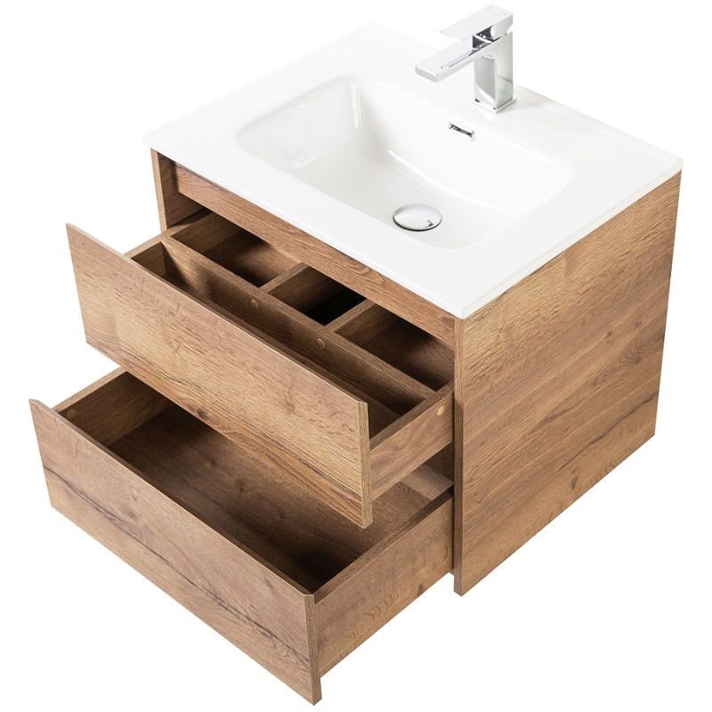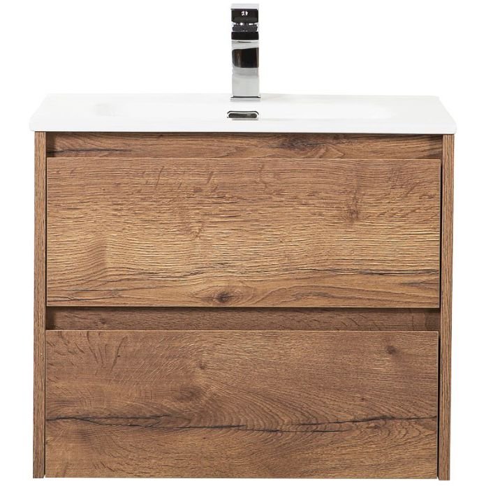 База под раковину подвесная BelBagno (Бельбагно) KRAFT с фрезерованными ручками по всей длине фасада с двумя выкатными ящиками Rovere Tabacco 700x460x500 KRAFT-700-2C-S