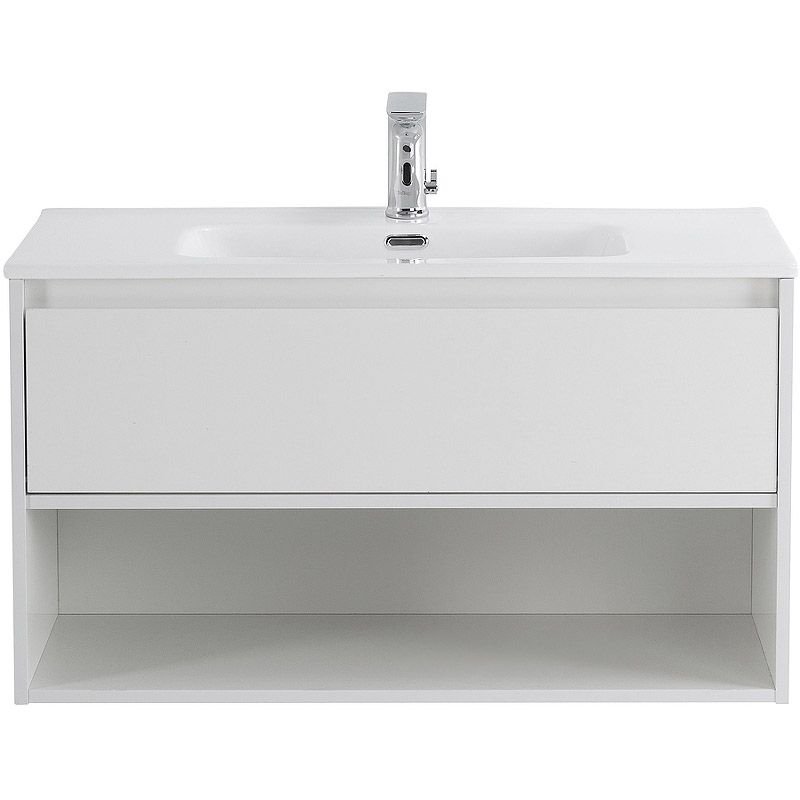 База под раковину подвесная BelBagno (Бельбагно) KRAFT с одним выкатным ящиком с фрез. ручкой по длине фасада и с одной откр.полкой Bianco Op. 800x460x500 KRAFT-800-1C-SO-BO