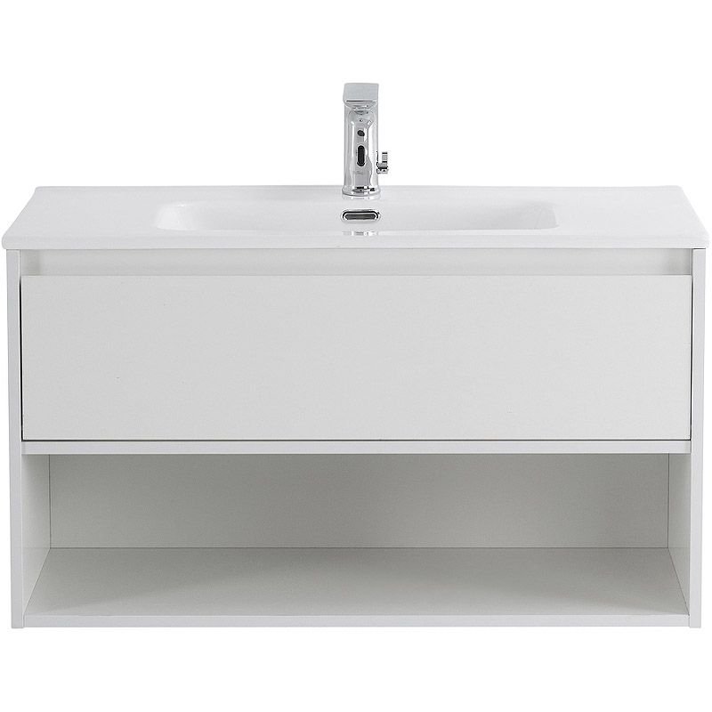 База под раковину подвесная BelBagno (Бельбагно) KRAFT с одним выкатным ящиком с фрез. ручкой по длине фасада и с одной откр.полкой Bianco Op. 900x460x500 KRAFT-900-1C-SO-BO