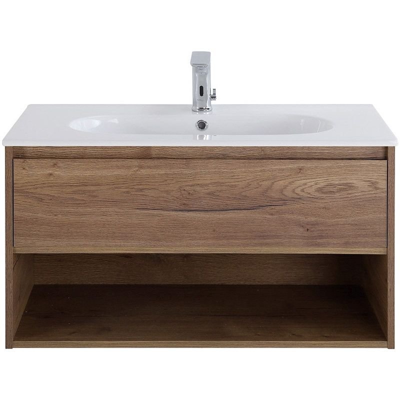 База под раковину подвесная BelBagno (Бельбагно) KRAFT с одним выкатным ящиком с фрез. ручкой по длине фасада и с одной откр.полкой Rov.Tabacco 900x460x500 KRAFT-900-1C-SO-RT