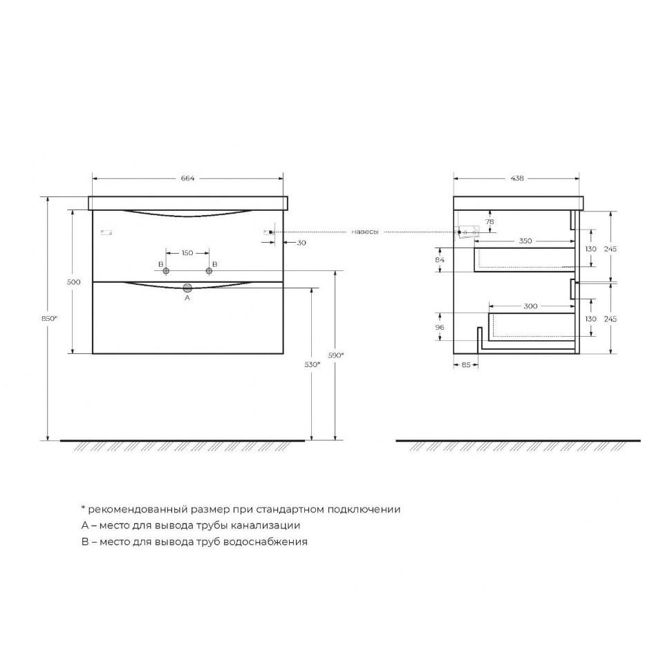 База под раковину подвесная BelBagno (Бельбагно) MARINO-CER с двумя выкатными ящиками Rovere Grigio 664x440x500 MARINO-CER-700-2C-SO-RG-P