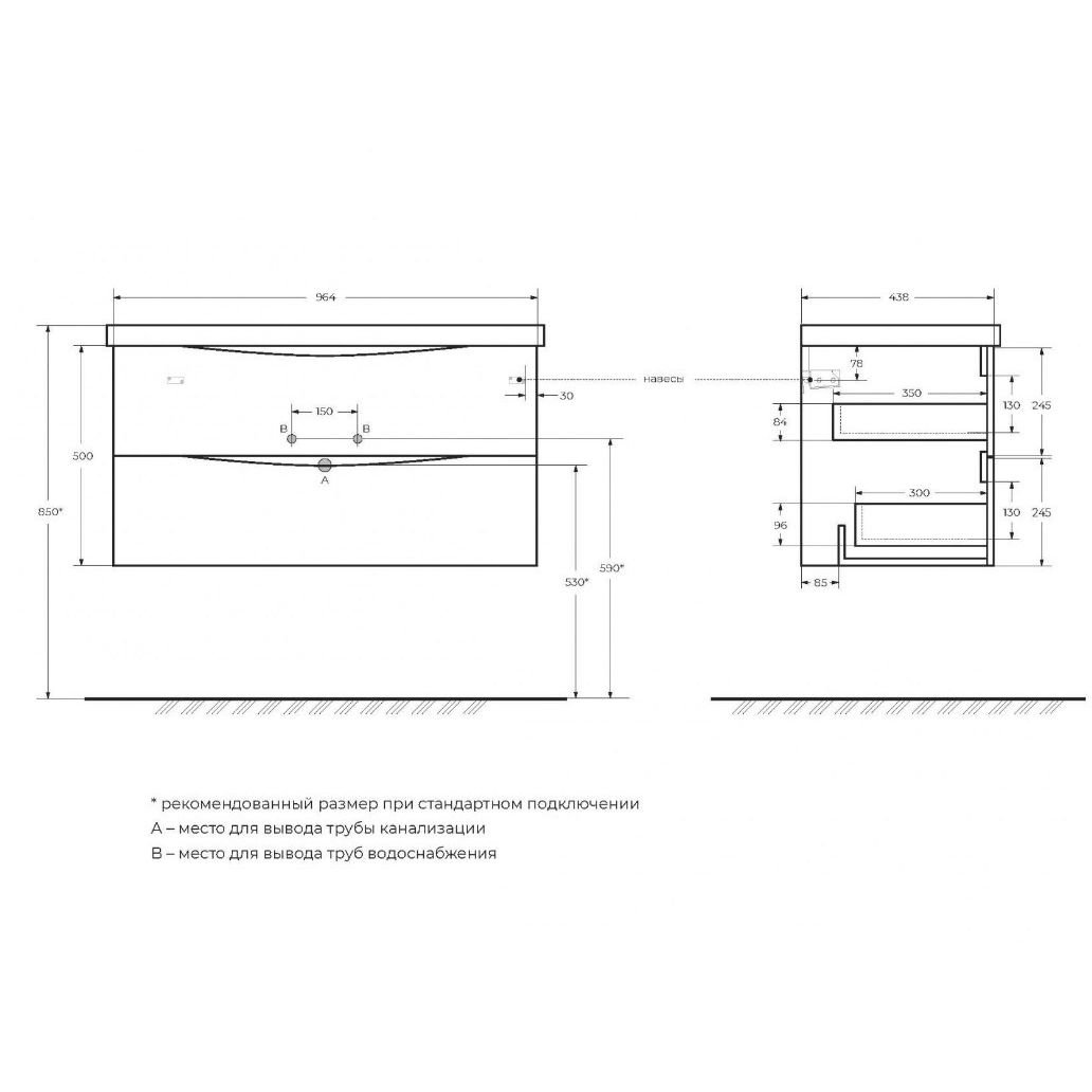 База под раковину подвесная BelBagno (Бельбагно) MARINO-CER с двумя выкатными ящиками Rovere Grigio 964x440x500 MARINO-CER-1000-2C-SO-RG-P