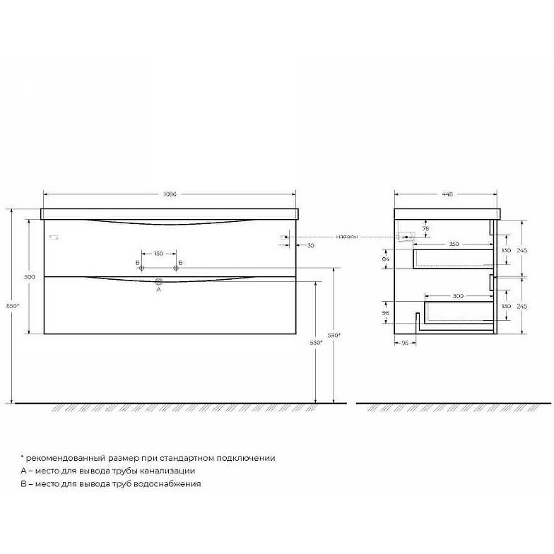 База под раковину подвесная BelBagno (Бельбагно) MARINO с двумя выкатными ящиками Rovere Grigio 1100x450x500 MARINO-1100-2C-SO-RG-P