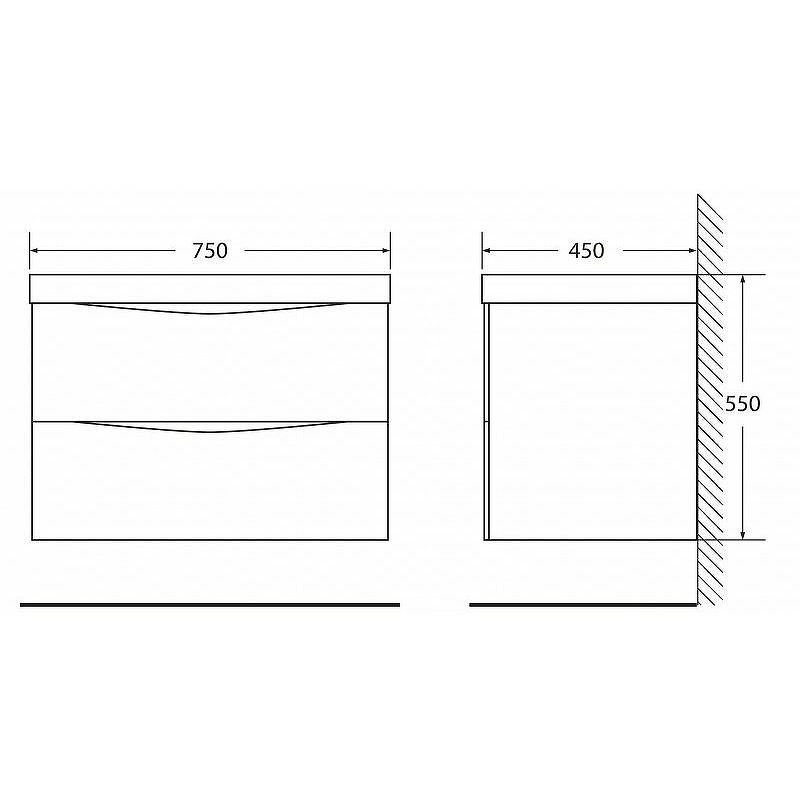База под раковину подвесная BelBagno (Бельбагно) MARINO с двумя выкатными ящиками Rovere Nature 750x450x500 MARINO-750-2C-SO-RN-P