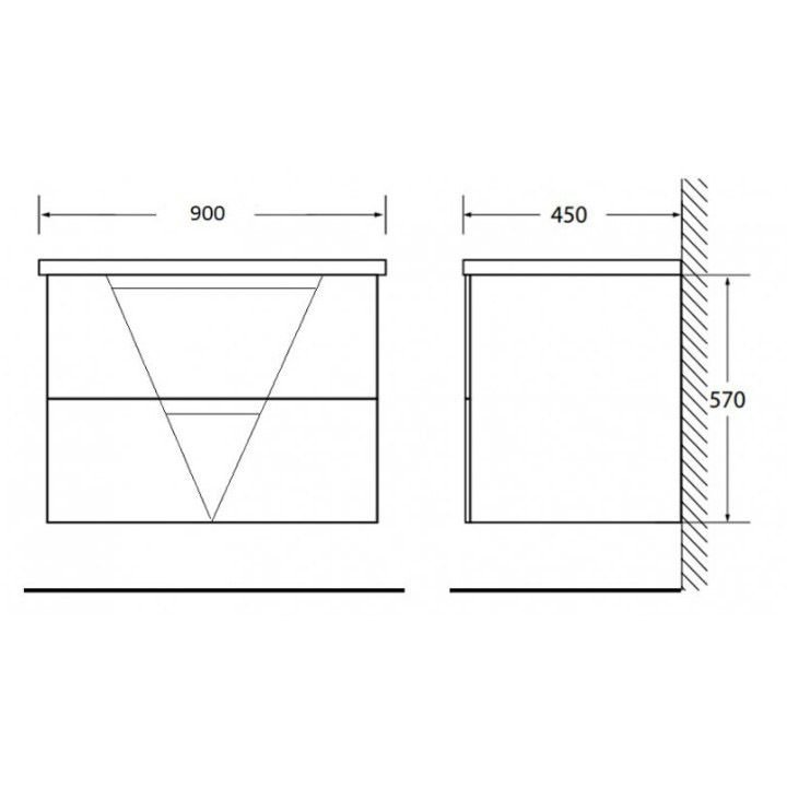 База под раковину подвесная BelBagno (Бельбагно) VITTORIA с двумя выкатными ящиками Bianco Lucido 900x450x570 VITTORIA-900-2C-SO-BL