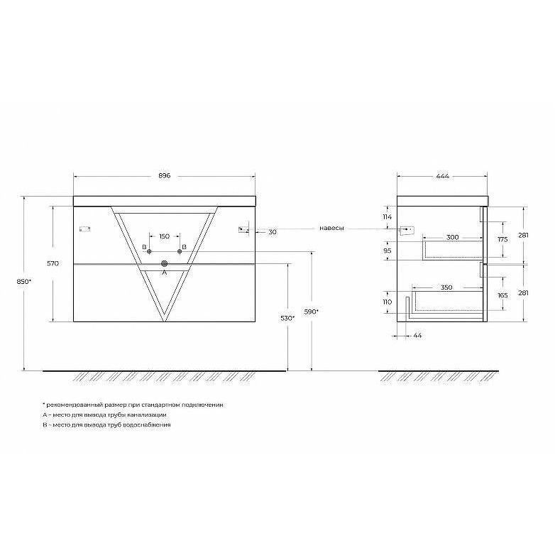 База под раковину подвесная BelBagno (Бельбагно) VITTORIA с двумя выкатными ящиками Pino 900x450x570 VITTORIA-900-2C-SO-PINO-P
