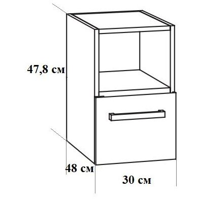 Marlin 3160motion, боковой шкаф под рак. 30х48см (1 верхняя полка и 1 ящик) для тумбы WNWUG92DR, цвет включая полку каштан графитовый