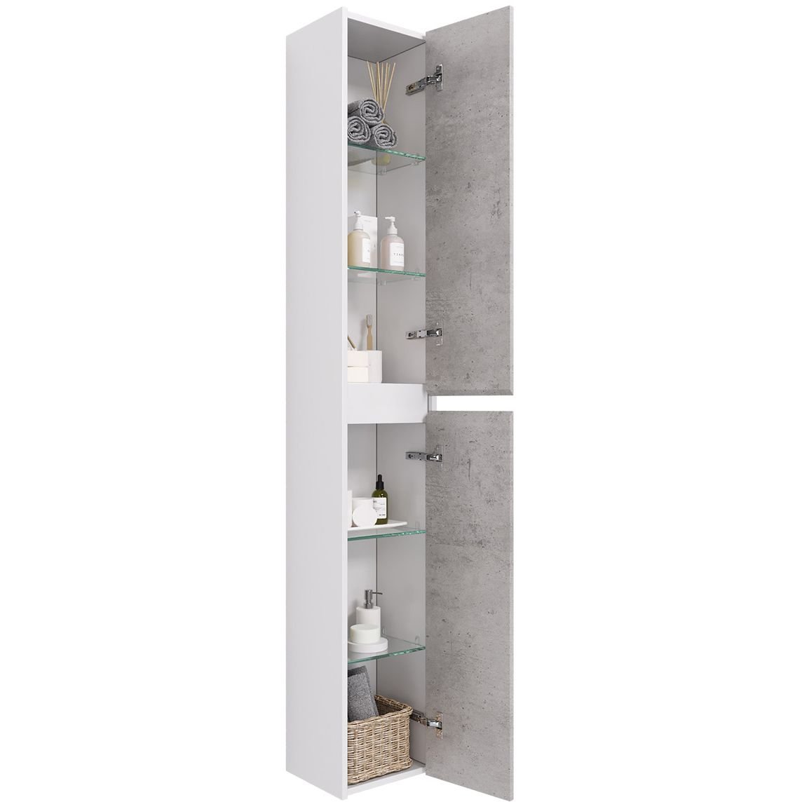 Пенал Dreja (Дрея) Slim 30 см подвесной/напольный универ., 2 дв., 4 стек. полки белый глянец/бетон (99.0505)