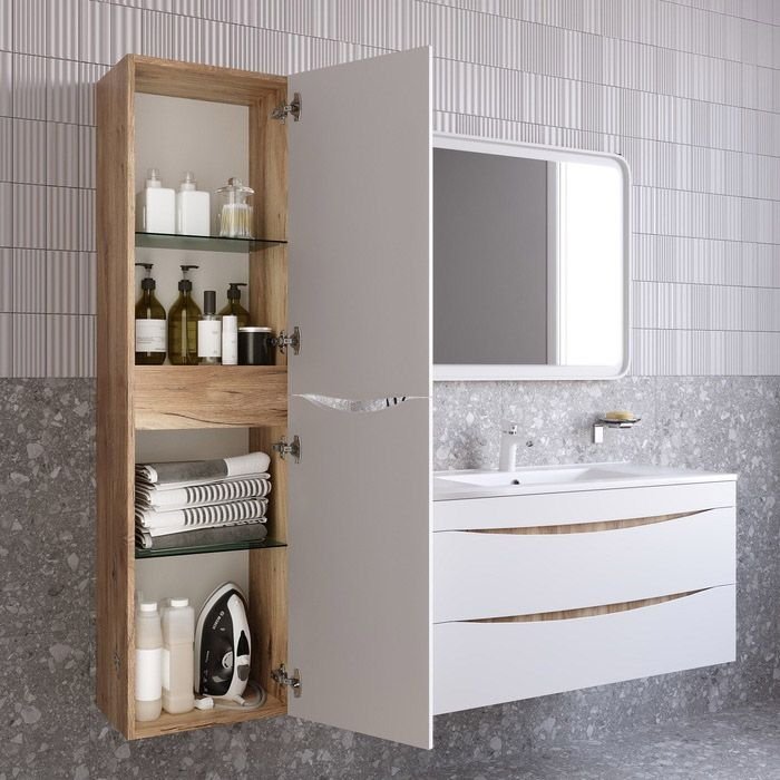 Стильный подвесной пенал Cloud из влагостойкой ЛДСП, где гармонично сочетаются боковины цвета золотистого дуба и матовые белые фасады с интегрированными ручками. Обновление популярной коллекции мебели Cloud и украшение современной ванной в стиле лофт. • Мебель IDDIS® изготовлена из влагостойкой ЛДСП, пригодной для использования во влажных помещениях (при соблюдении правил эксплуатации и ухода). Благодаря этому она устойчива к влажной среде и прослужит долго. • Подвесная конструкция пенала делает ее воздушной и упрощает процесс уборки в ванной. • Дверцы имеют интегрированные ручки и механизм плавного доведения и закрываются плавно и бесшумно. Фурнитура рассчитана на 30 000 открываний, что составляет более 10 лет исправной работы. • Стеклянные полки надежно зафиксированы, что предотвращает риск их случайного повреждения. • Крепления надежны: они рассчитаны на большой вес и позволяют равномерно распределять нагрузку. Гарантия на мебель IDDIS® – 3 года. (с) Авторский текст, апрель 2023 г.