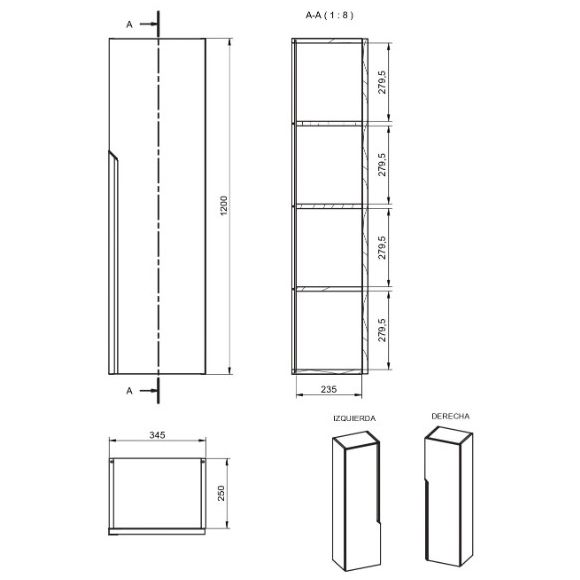 Пенал Visobath (Визобас) Eleven, 34.5 см, дверь распашная, цвет пепельный матовый лак (Ceniza) 85657/Ceniza