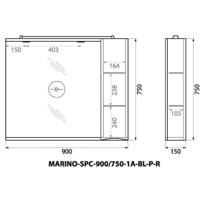 Шкаф зеркальный подвесной BelBagno (Бельбагно) MARINO с одной расп. дверцей с доводчиками LED 2x4W правосторонний Bianco Lucido 900х150х750 MARINO-SPC-900/750-1A-BL-P-R