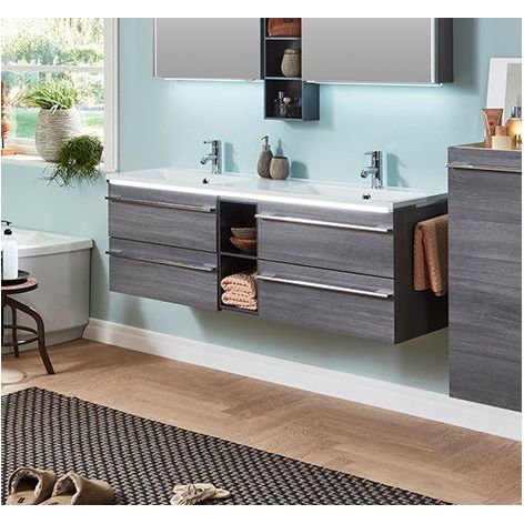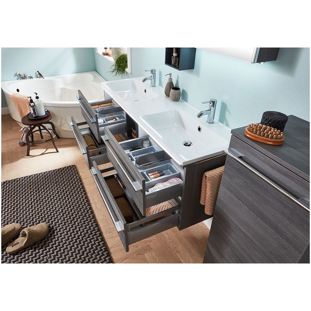 Marlin 3250star, тумба под двойную раковину 140 см (4 ящика, 2 полки), цвет включая полки белый шелковый глянец
