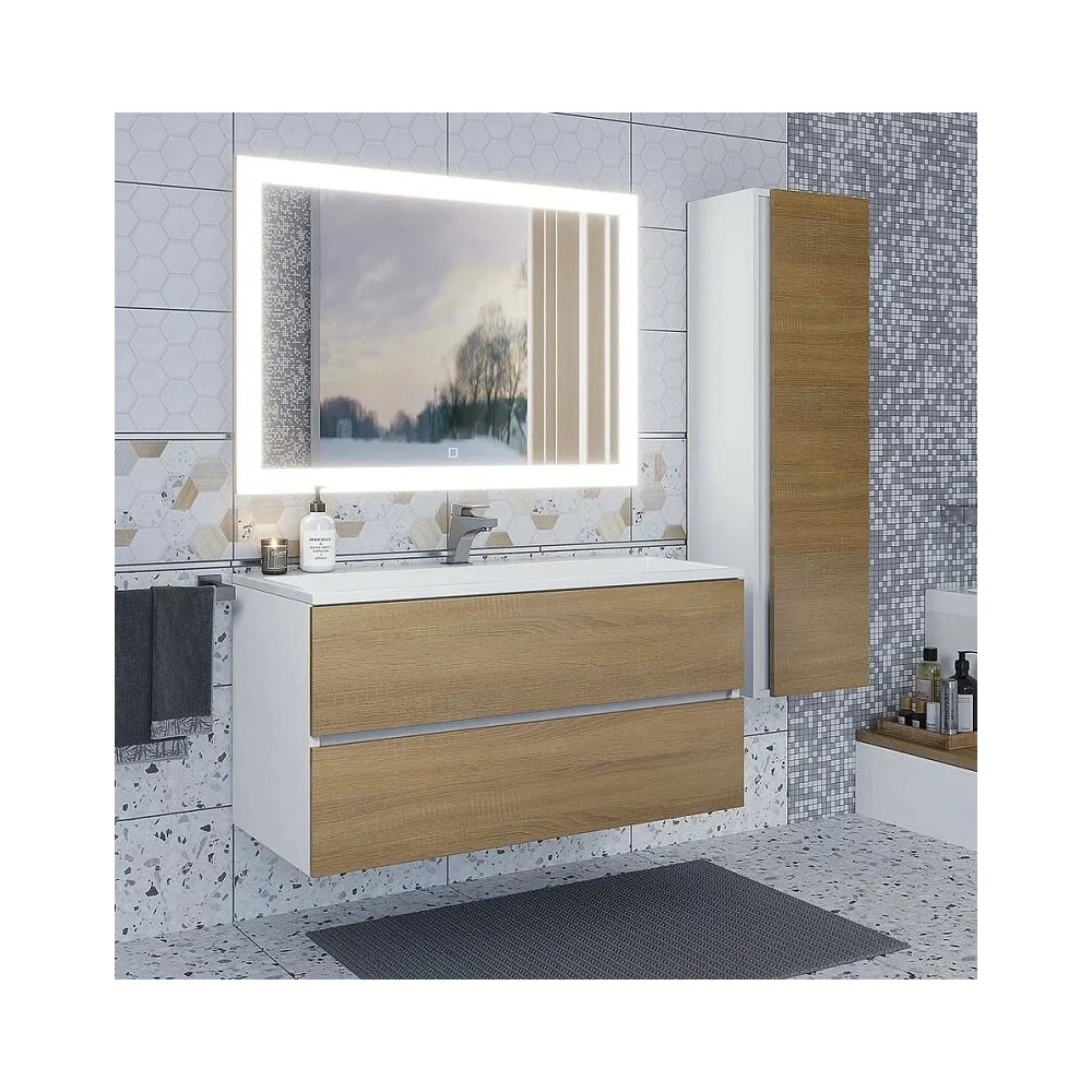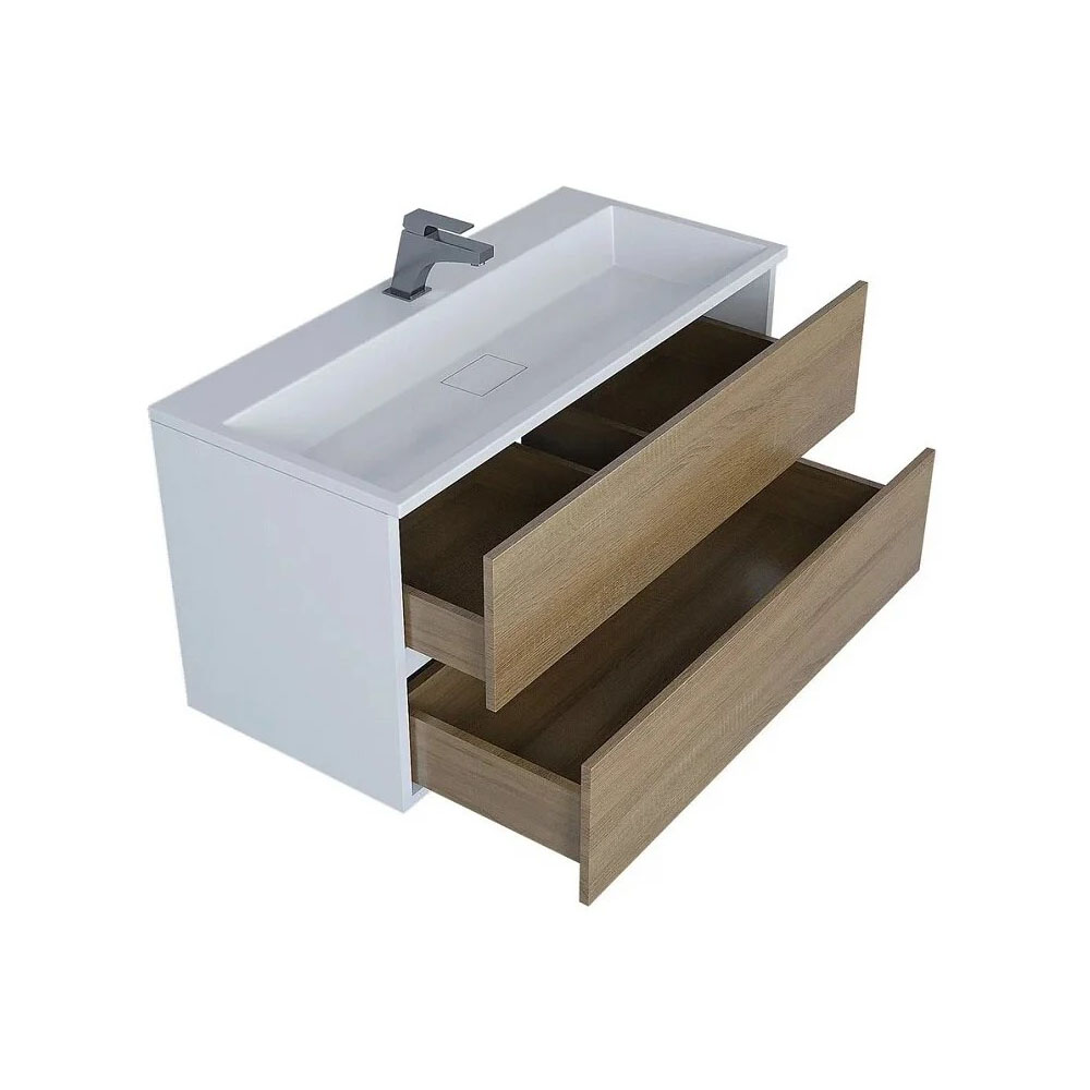 Тумба под раковину Uperwood Barsa 293020533, 100 см, подвесная, белая/дуб сонома