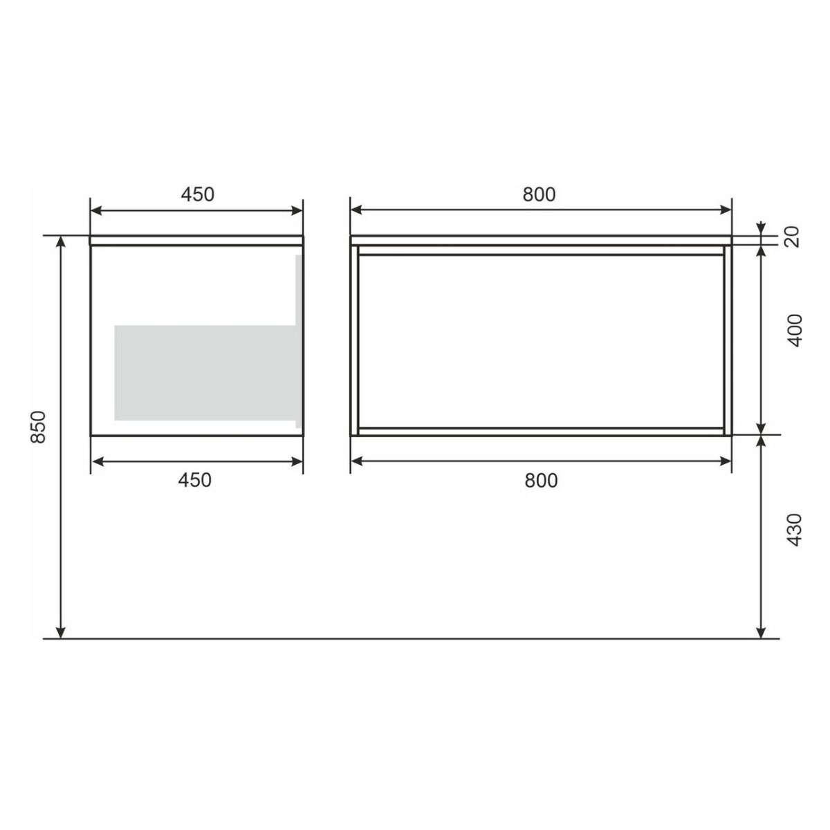 Тумба под раковину для ванной Uperwood (Аппервуд) Next, подвесная, 80 см, белая/графит, 1 ящик