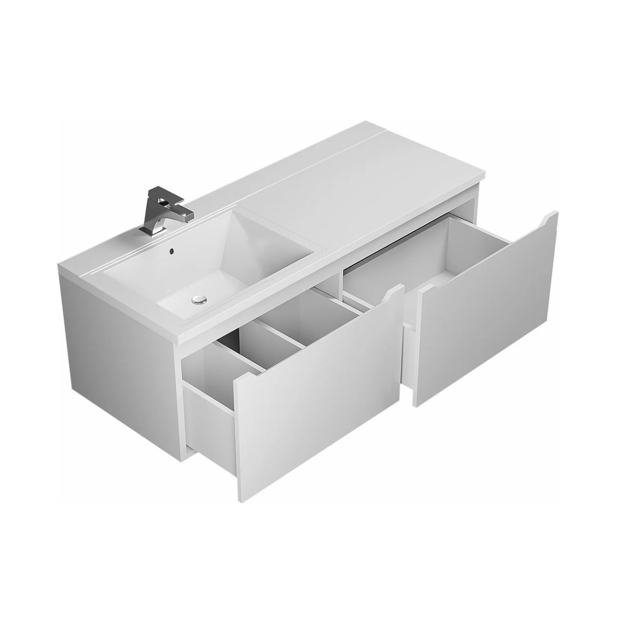 Подвесная тумба под раковину uperwood Tanos 120 см, левая, белый 291020263 с выдвижными ящиками представляет собой функциональное, надежное и практичное решение, которое отлично впишется в любой современный дизайн ванной комнаты.