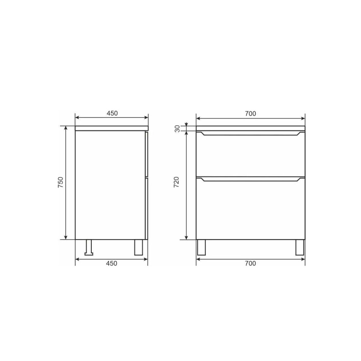 Тумба под раковину для ванной uperwood Tanos 70 см, напольная, белая, 2 ящика 291120330 с выдвижными ящиками представляет собой функциональное, надежное и практичное решение, которое отлично впишется в любой современный дизайн ванной комнаты.