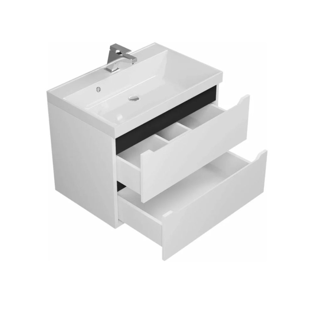 Тумба под раковину для ванной комнаты uperwood Tanos подвесная_60 см, белая/графит 2930205140 с двумя выдвижными ящиками представляет собой функциональное, надежное и практичное решение, которое отлично впишется в любой современный дизайн ванной комнаты.