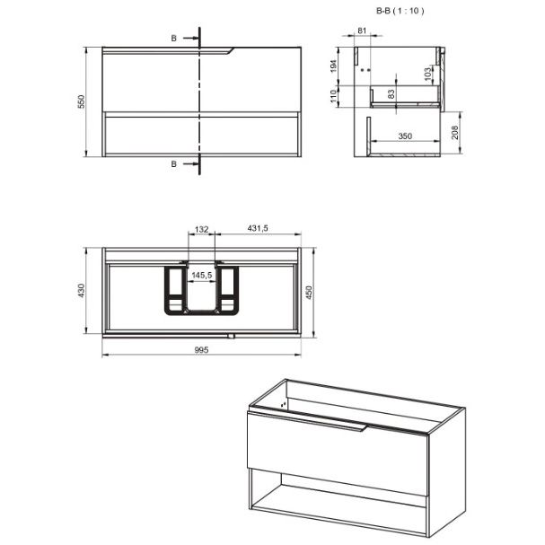 Visobath Eleven, тумба 100 см, 1 ящик и 1 открытая полка, цвет кварцевый матовый лак (Quarzo)