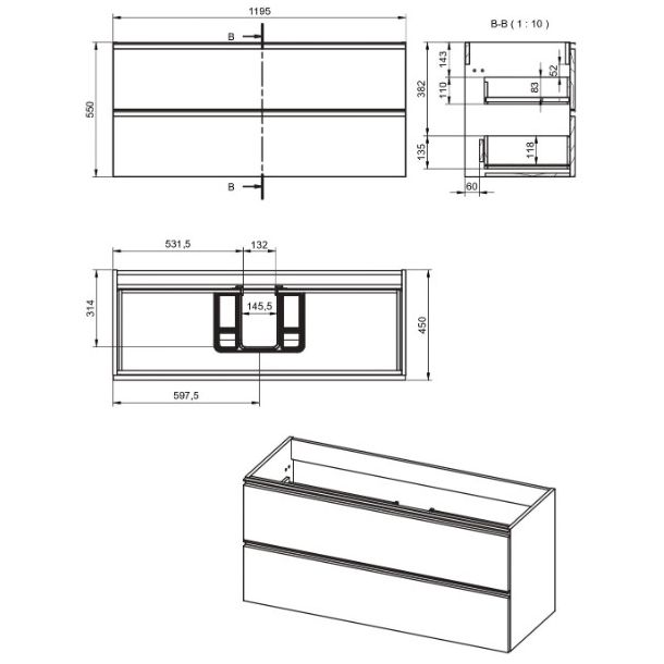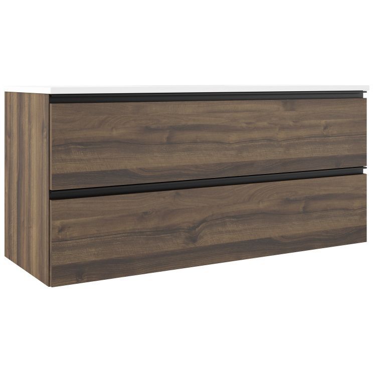Visobath Granada, тумба 120 см, 2 ящика c черными ручками, цвет орех (Valenti)