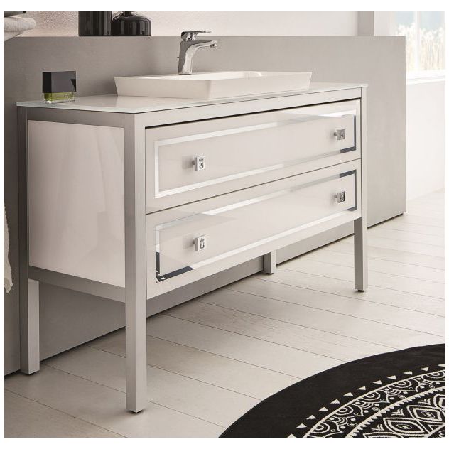 Тумба с белой стекляной столешницей и ножками Puris (Пурис) Urban Loft 1280 мм + раковина 600 мм, цвет белое стекло URB331201(898/311)