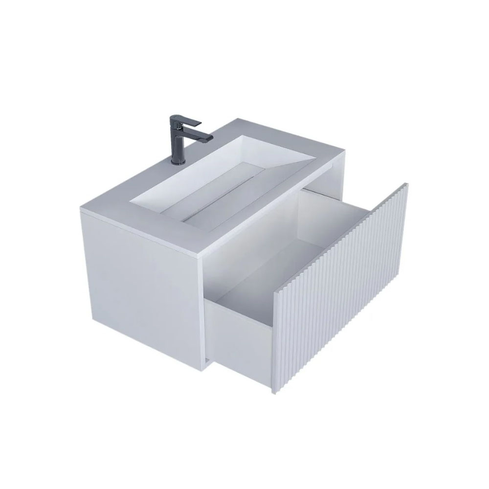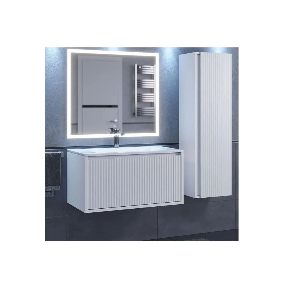 Подвесная тумба под раковину Uperwood Next Premium выполнена полностью в белом цвете и оснащена одним выдвижным ящиком. Фасад и боковые стенки изделия выполнены из МДФ толщиной 16 мм. Фасады с вертикальной фрезеровкой. Выдвижные ящики с доводчиками изготовлены из влагостойкой ЛДСП. Вся фурнитура и доводчики премиум-класса.