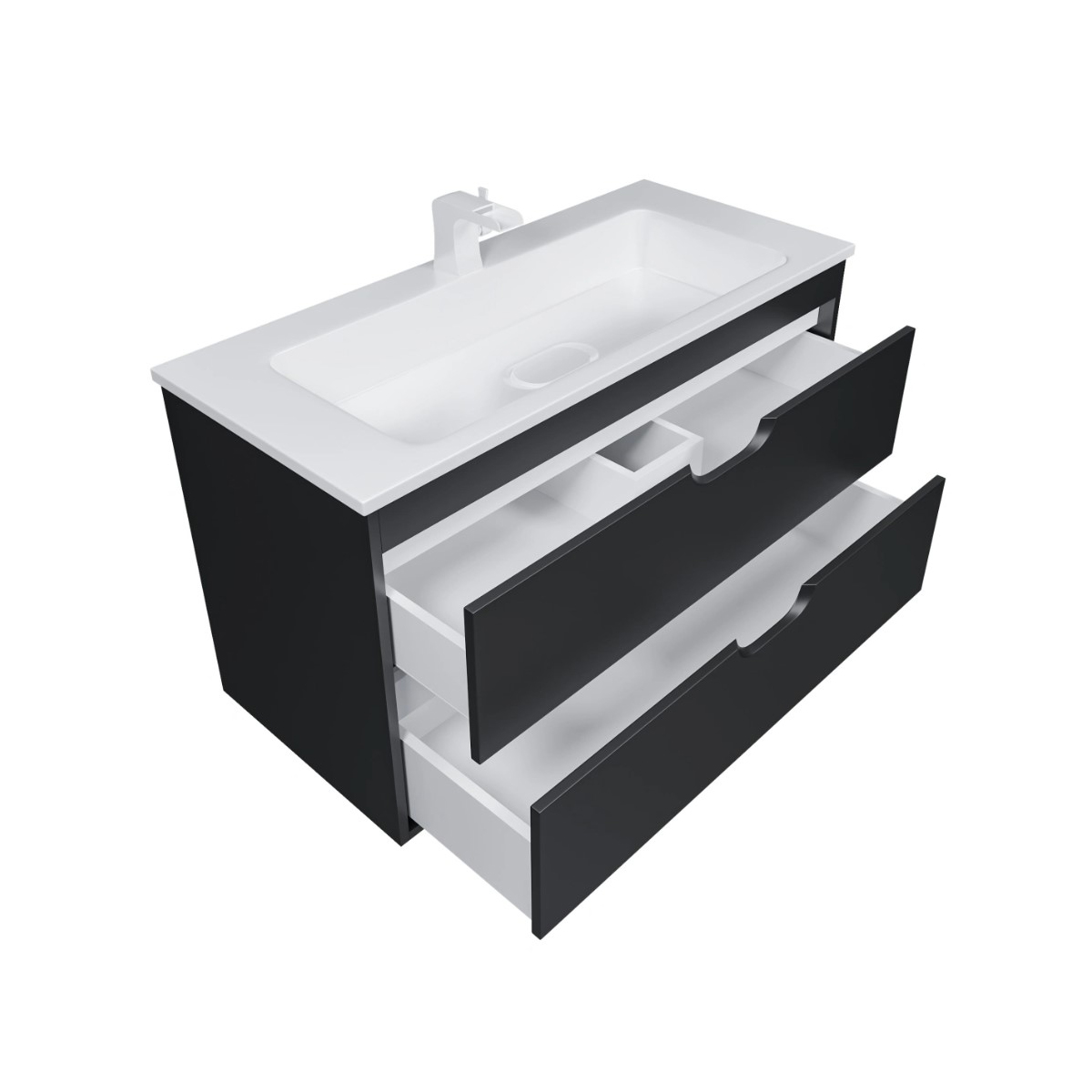 Тумба с раковиной для ванной Uperwood (Упервуд) Modul, 100 см, подвесная, матовая, черная 393020553
