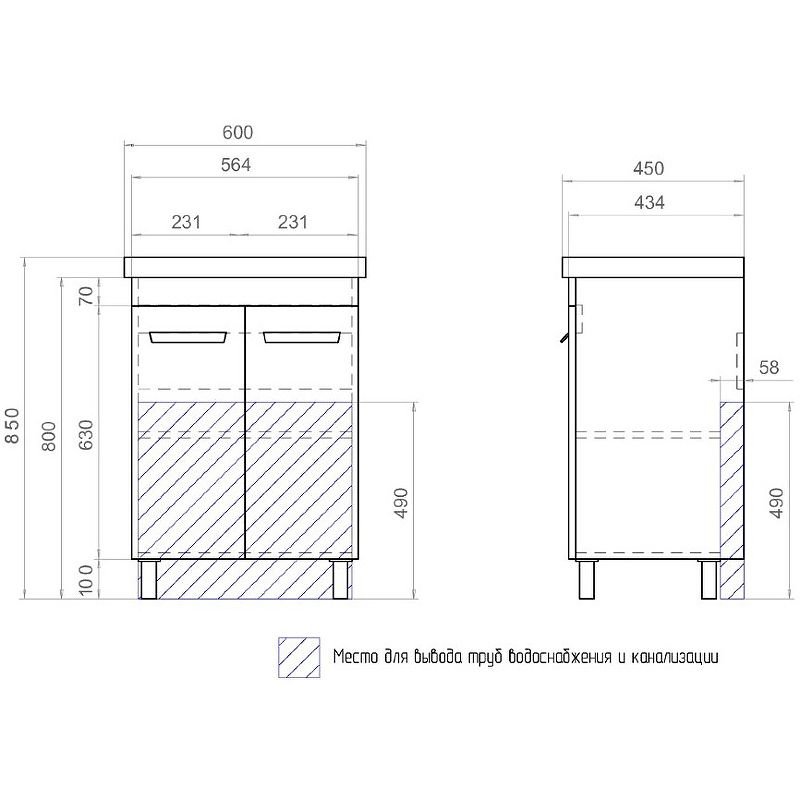 Тумба под раковину Vigo Nova 60 tn.NOV.MIR.60.2D напольная с двумя распашными дверцами.