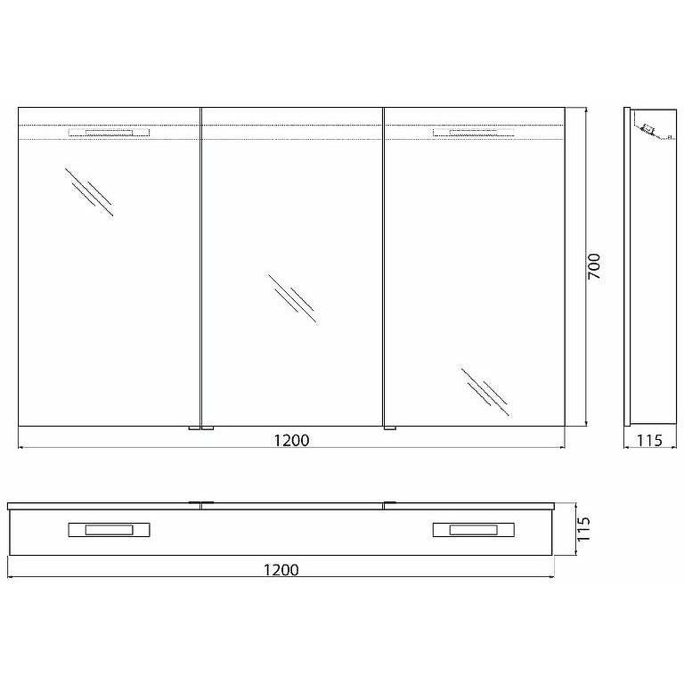 Зеркальный шкаф BelBagno (Бельбагно) с двумя зеркальными дверцами и одним зеркальным полотном с нижней подсветкой дверей SPC-3A-DL-BL-1200 1200x126x700