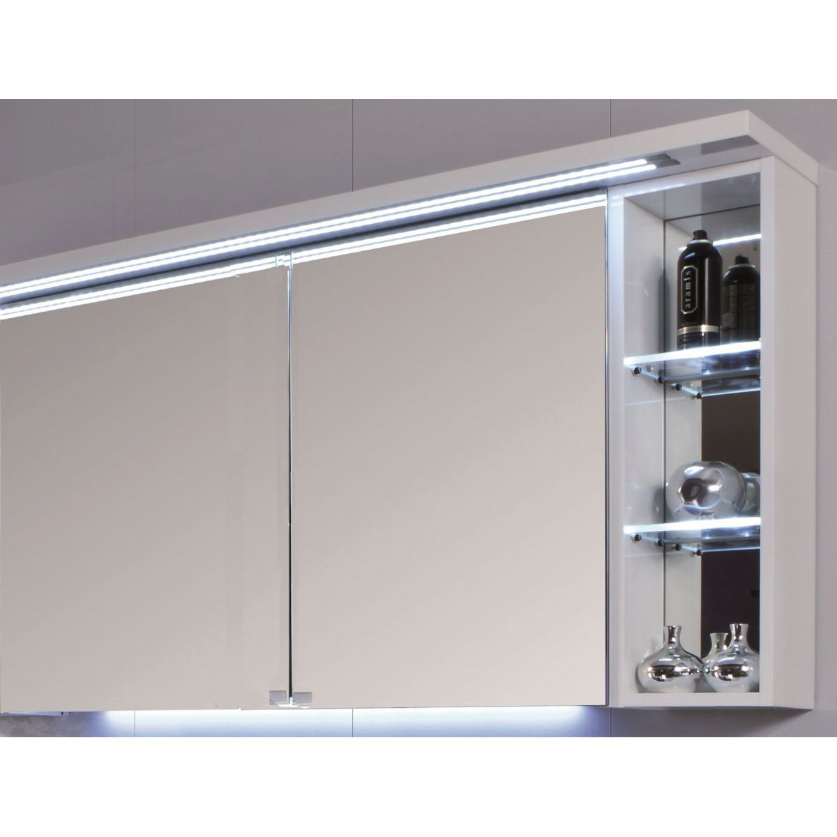 Puris Crescendo, зеркальный шкаф (2 двери) c LED подсветкой 900 мм правый, цвет белый высокоглянцевый
