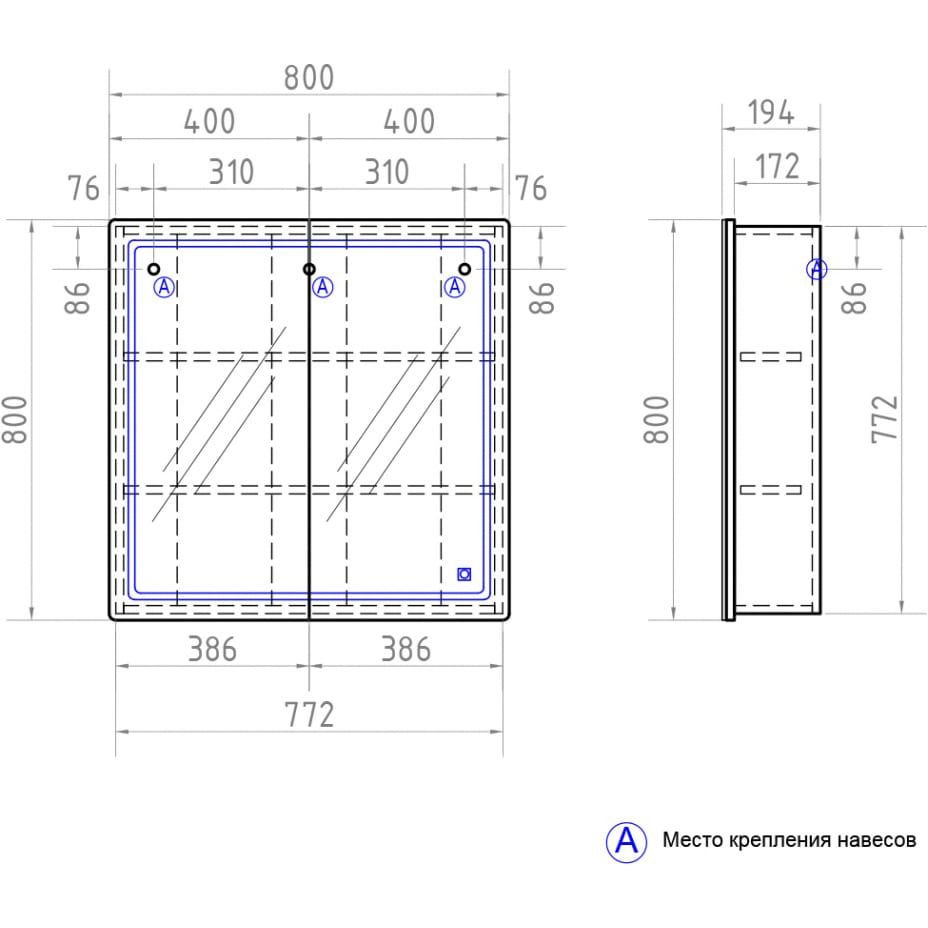 Зеркальный шкаф Vigo (Виго) Geometry 80 zsh.GEO.80.El с LED-подстветкой (80х80х19,5) белый