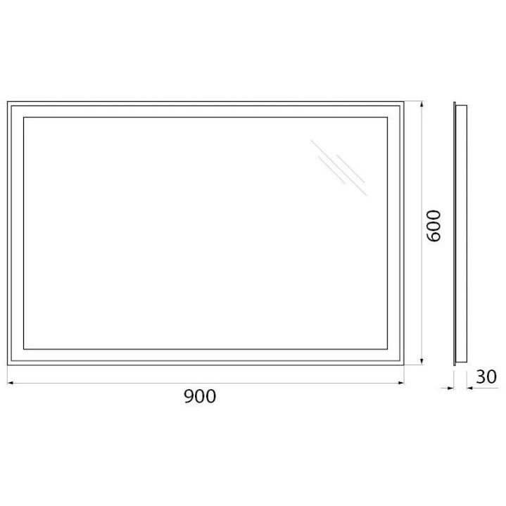 Зеркало BelBagno (Бельбагно) с встроенным светильником и кнопочным выключателем SPC-GRT-900-600-LED-BTN 12W 220-240V 900x30x600