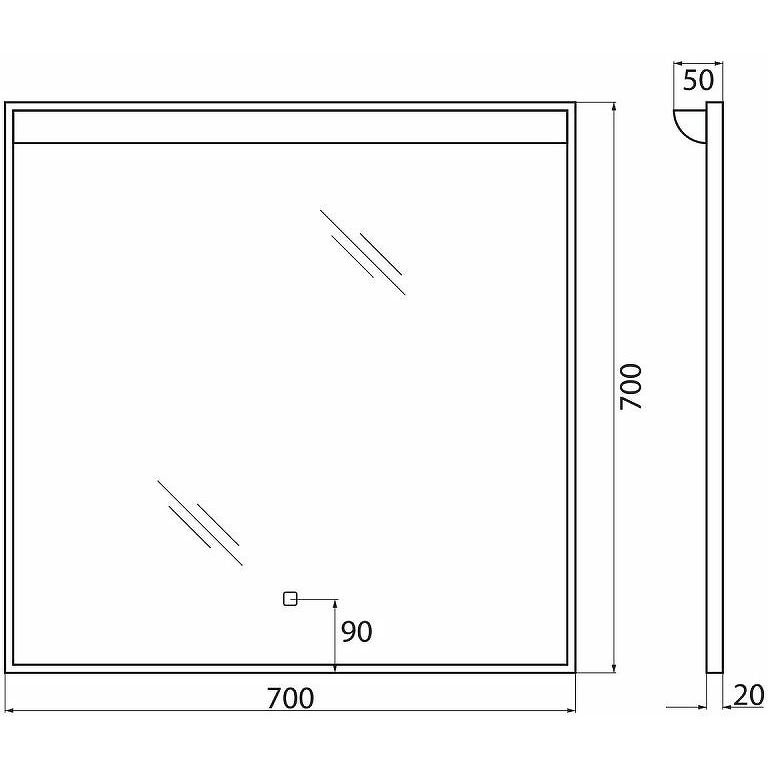 Зеркало BelBagno (Бельбагно) в алюминиевой раме с подсветкой с сенсорным выключателем SPC-UNO-700-700-TCH 700x50x800