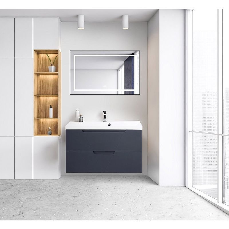 Зеркало BelBagno (Бельбагно) в алюминиевой раме со встроенным светильником сенсорным выключателем и подогревом SPC-KRAFT-1085-685-TCH-WARM-NERO 1085x32x685 мм