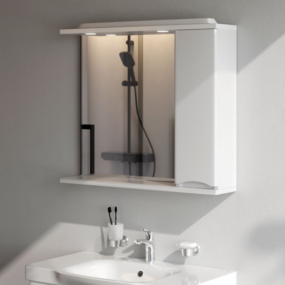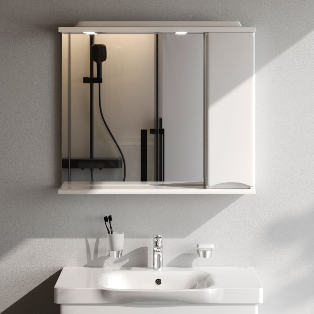 Зеркало частично-зеркальный шкаф Am.Pm (Ам.Пм) Like 80 см с подсветкой, правый, глянец, белый, M80MPR0801WG