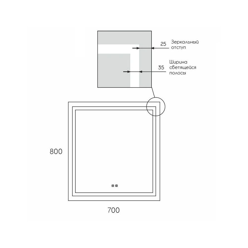 Зеркало Uperwood Tanos 291020221, 70 см, с подсветкой, сенсорный выключатель и подогревом