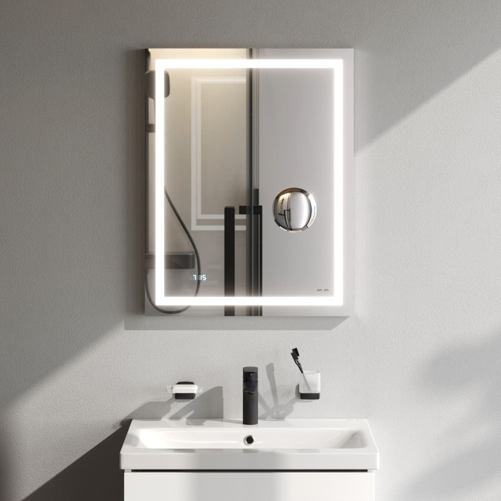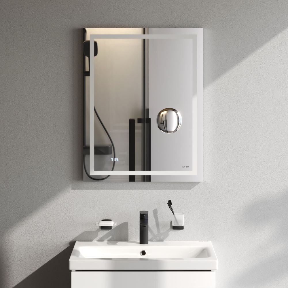 Зеркало универсальное Am.Pm (Ам.Пм) Gem с контурной Led-подсветкой, часами и косметическим зеркалом, 55 см белый, M91AMOX0553WG