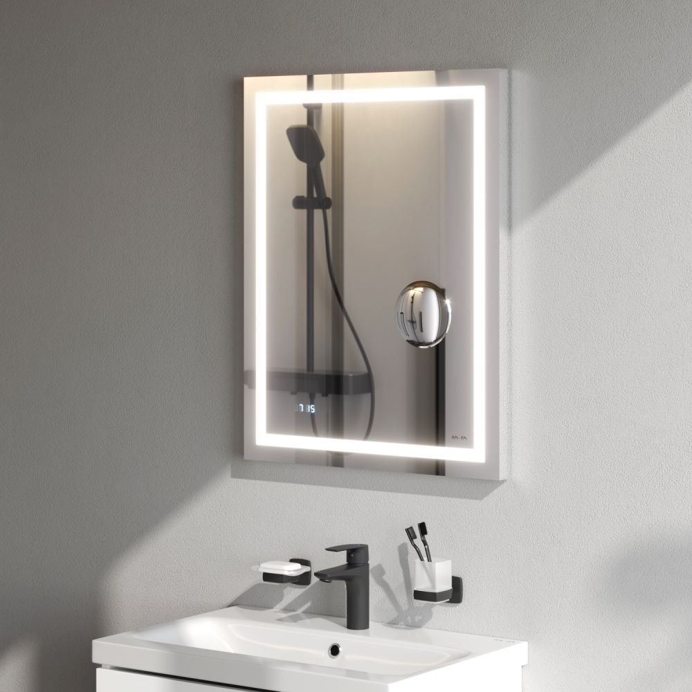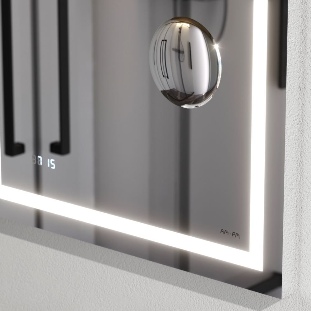 Ультрамодный лаконичный дизайн зеркал Gem от собственной студии дизайна AM.PM Design подойдет к интерьеру любой ванной комнаты. Премиальный функционал в коллекции доступного ценового сегмента: встроенное косметическое зеркало увеличивающее изображение и часы прямо под стеклом - всегда на виду. Усиленная LED-подсветка по периметру обеспечивает отличное рассеянное освещение и отсутствие теней. Срок службы светодиодов составляет более 30 000 часов. Скрытый механический выключатель сохраняет эстетическую целостность дизайна зеркала а также гарантирует отсутствие отпечатков пальцев на зеркальном полотне. Зеркальное полотно премиального качества производства Бельгии. Гарантия 3 года.