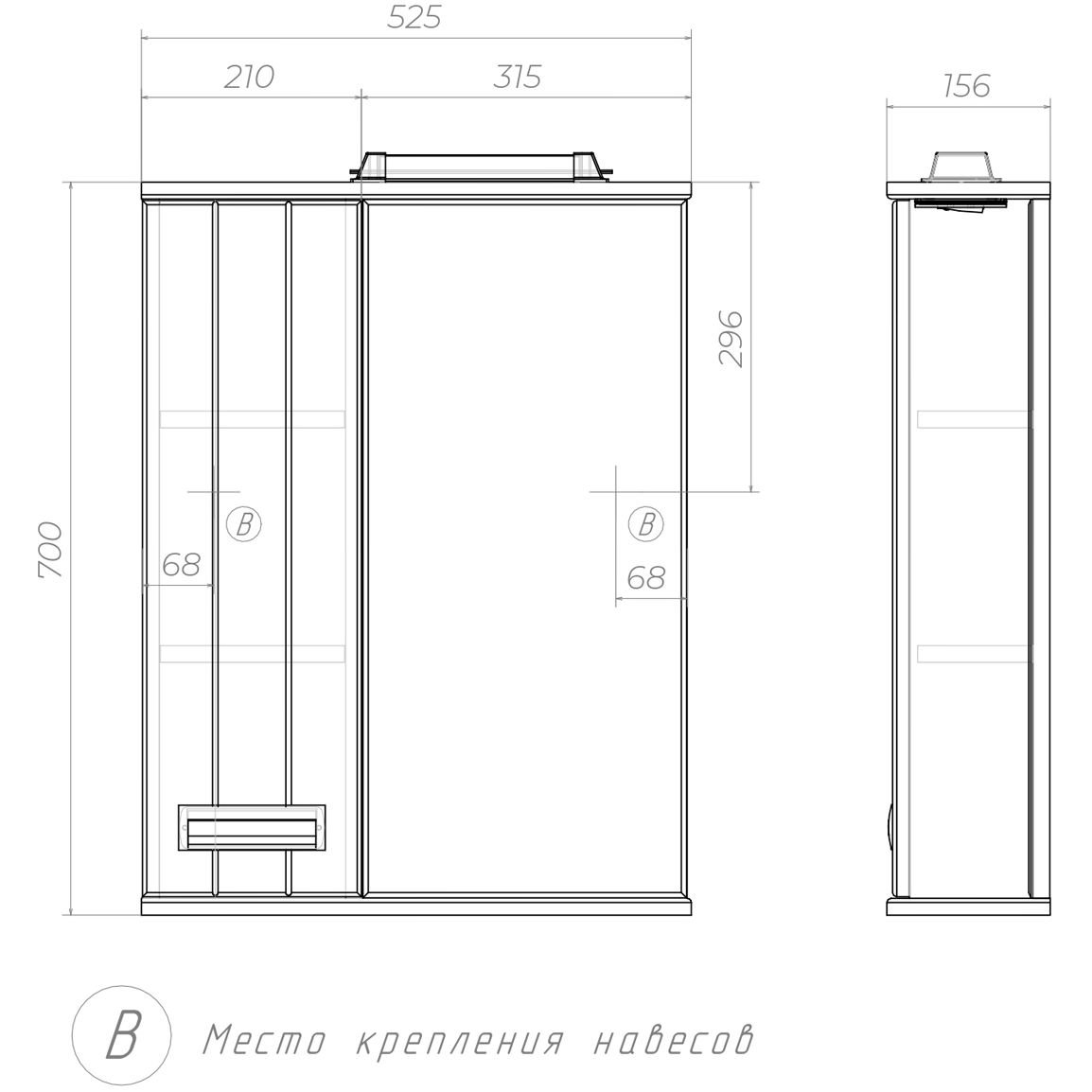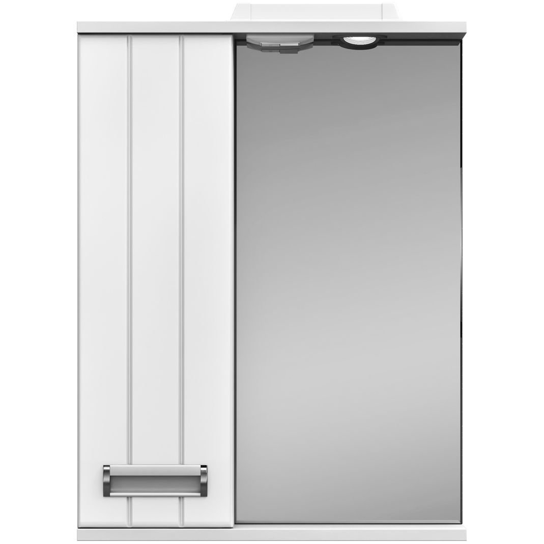 Зеркало Vigo Diana 50 левое со спотом 1 дверца; 2 полки ЛДСП 1 светодиодный светильник включатель с розеткой; ручка врезная металлическая хромированная.