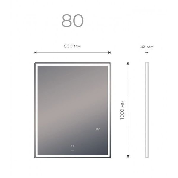 Зеркало Vigo (Виго) Roberta Luxe 80, z.ROB.80.Luxe подсветка, сенс. упр-е, встр. часы, ф-ция антизапотевания, таймер отключени