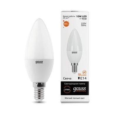 Лампа GAUSS 33110 led elementary candle 10w e14 2700k 1/10/100