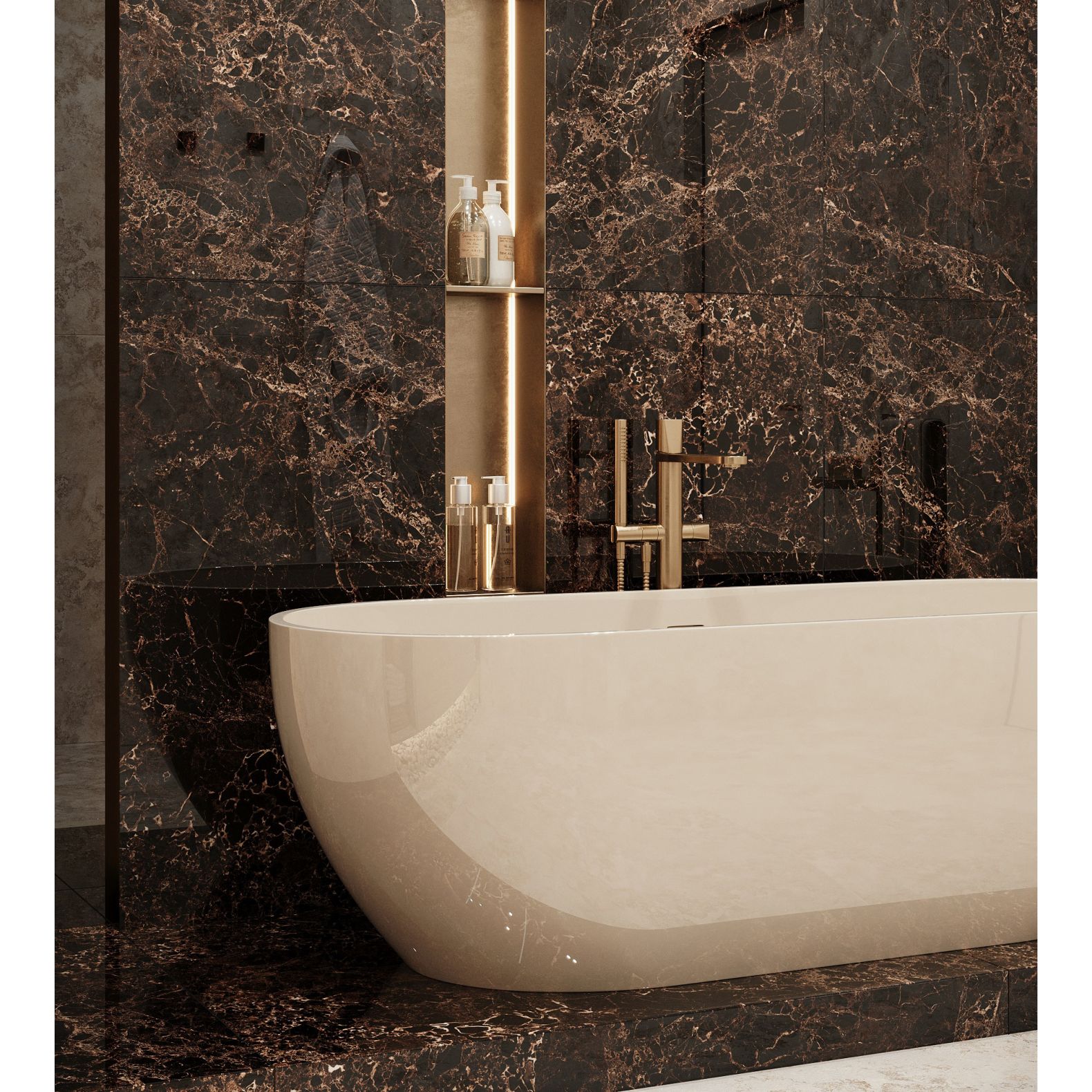 Керамогранит Vatican Emperador выполнен в насыщенном темном цвете с эффектом мрамора, что придаёт ему роскошный вид. Благодаря размеру 60х120 см, плитка позволяет создавать бесшовные и визуально просторные поверхности, что особенно актуально для современных интерьеров.