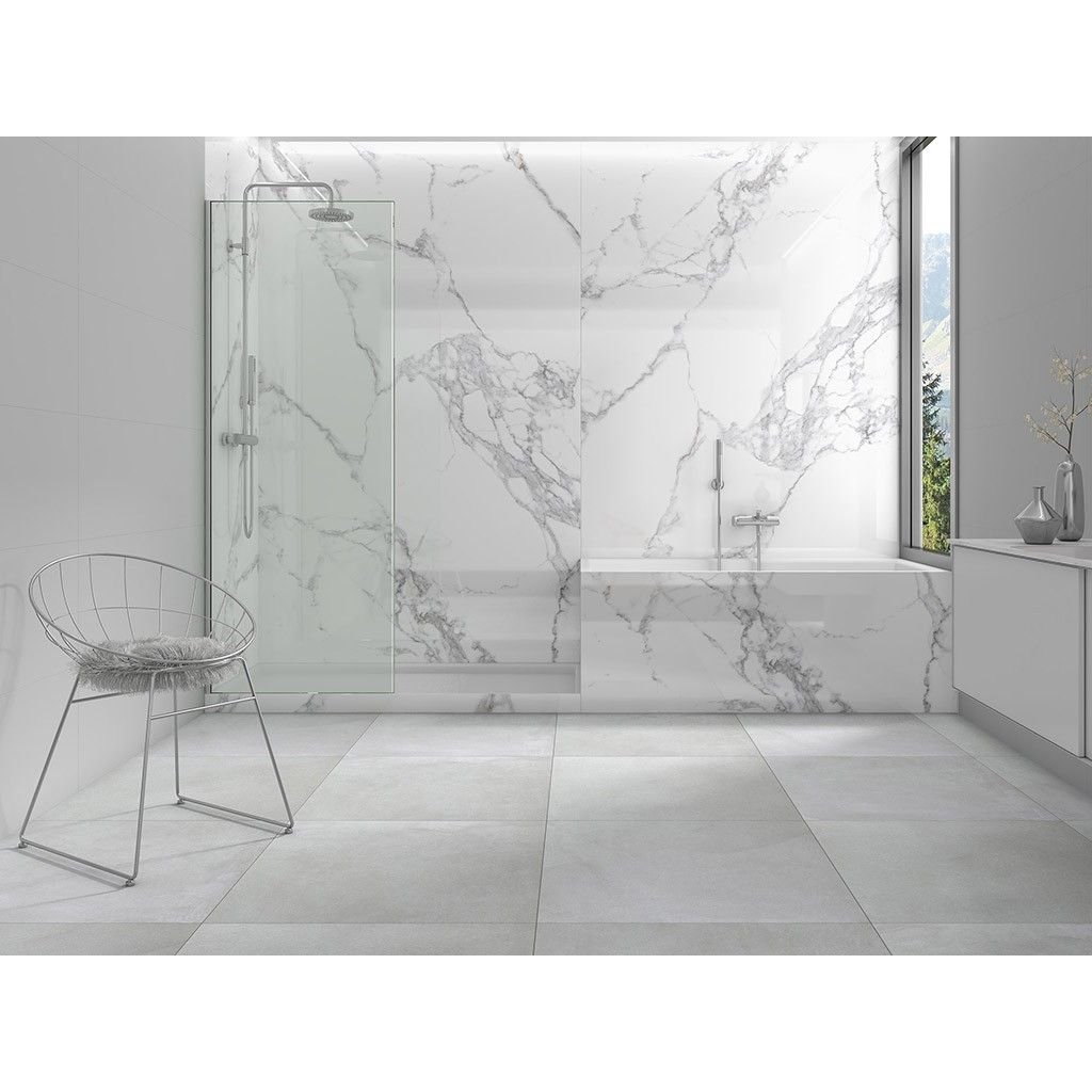 Обладая эффектом "bookmatch", этот керамогранит создает визуально захватывающее симметричное оформление, которое привлекает внимание и становится настоящим акцентом в интерьере. Полированная поверхность отражает свет, добавляя объем и глубину, а также делает пространство более светлым и просторным.