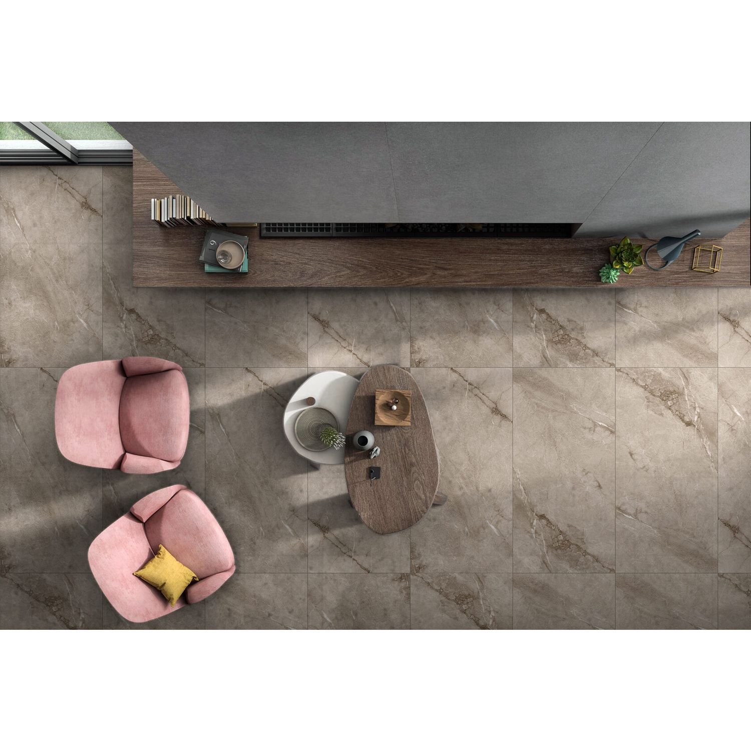 Коричневый мрамор - идеальный вариант для создания респектабельного интерьера в натуральных тонах.