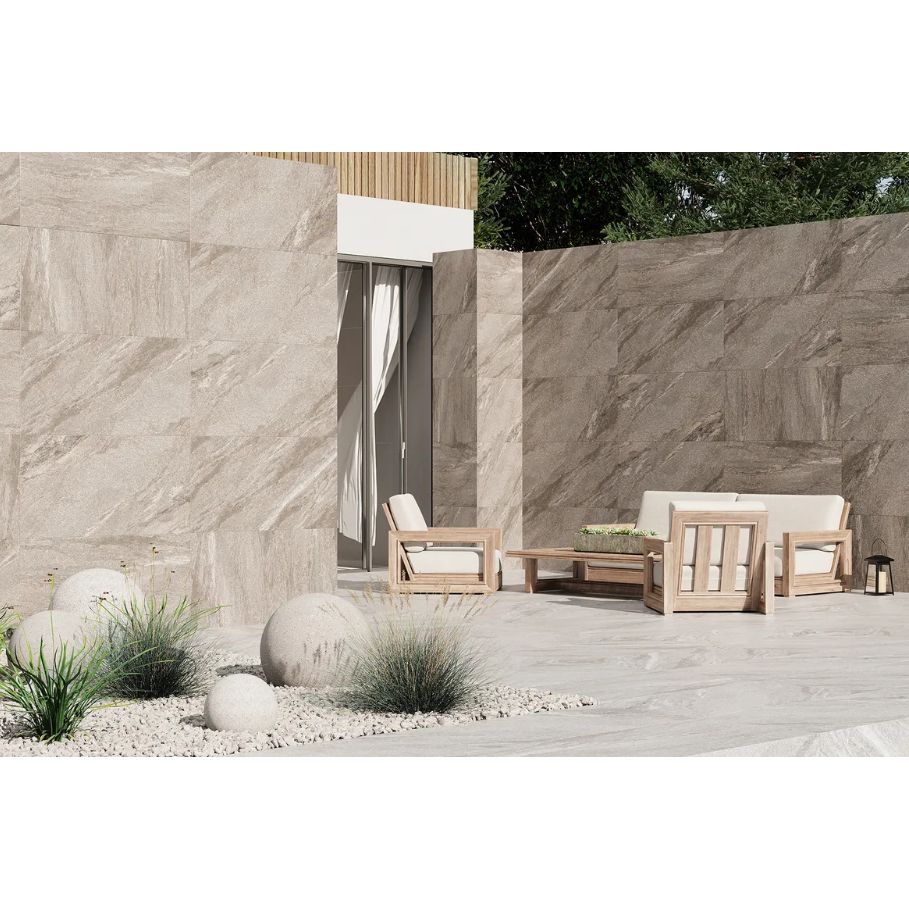 Одной из ключевых особенностей данного керамогранита является его антискользящее покрытие, что обеспечивает безопасность даже в условиях повышенной влажности. Это особенно важно для наружных террас, бассейнов или ванных комнат. Вы можете быть уверены, что даже в дождливую погоду, плитка останется надежной и удобной для использования.