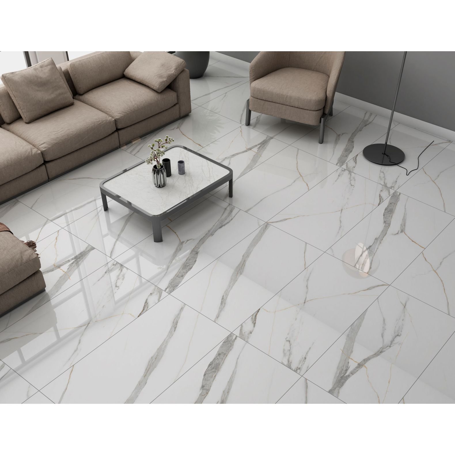 Благодаря своим размерам, плитка позволяет создавать бесшовные поверхности, что визуально увеличивает пространство и делает интерьер более гармоничным. Белый цвет с эффектом мрамора добавляет светлоты и свежести, а также отлично сочетается с разнообразными стилями оформления от классического до современного минимализма.