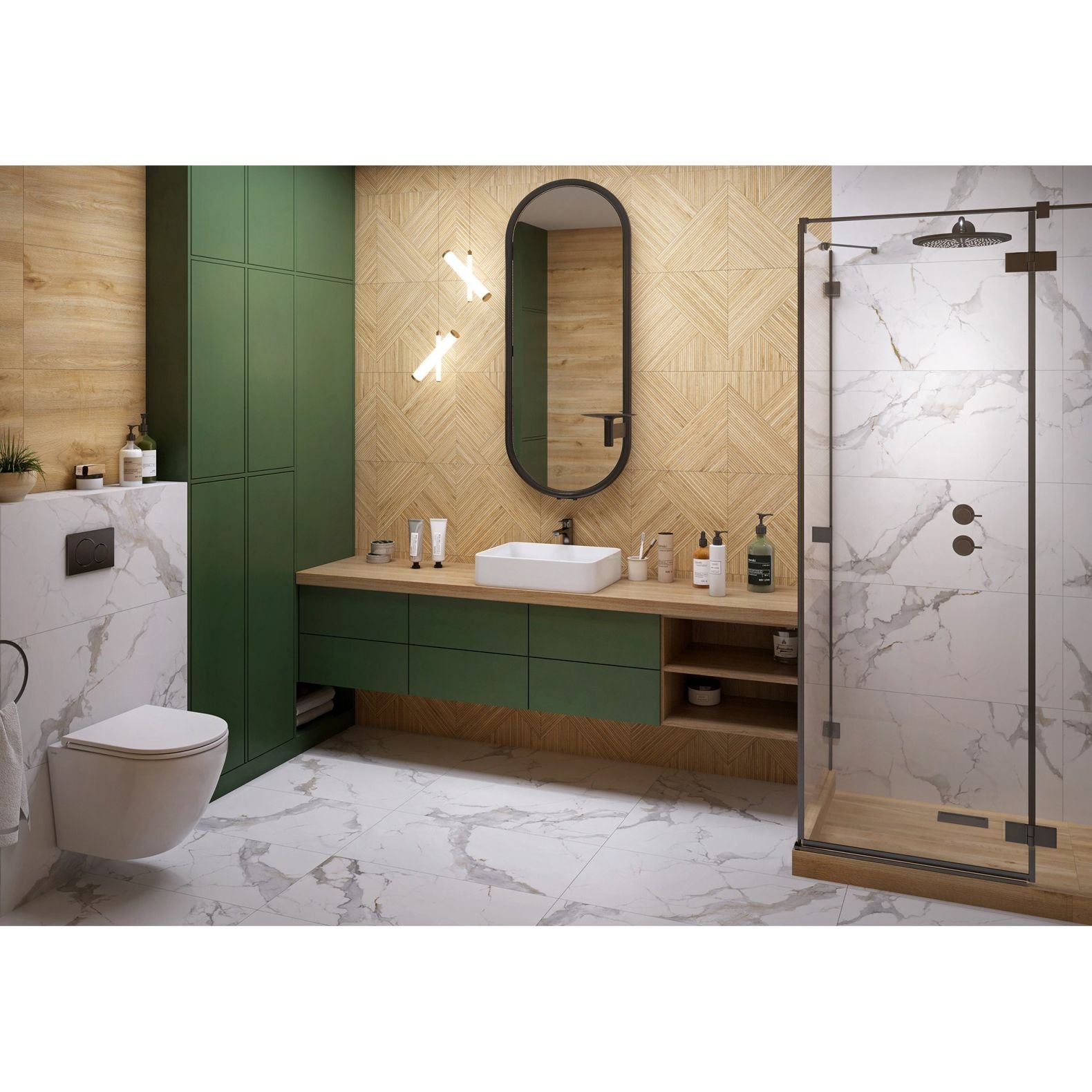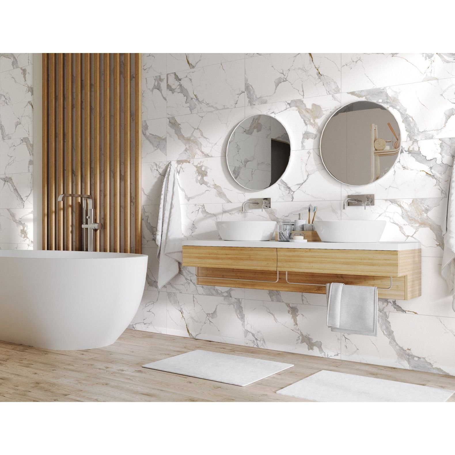 Керамогранит Calacatta Imperial не только красив, но и практичен. Он обладает высокой прочностью и устойчивостью к механическим повреждениям, что делает его идеальным выбором для полов и стен в жилых и коммерческих помещениях. Кроме того, данный материал не боится влаги и легко очищается, что позволяет поддерживать его в идеальном состоянии на протяжении долгого времени.